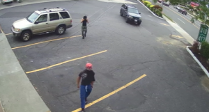 All three defendants allegedly heading towards the victim, with Hernandez in the blue Isuzu.